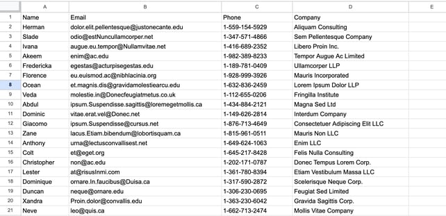 - Once your import file is ready, it should look similar to the example below. You can then upload it using the Upload File button.