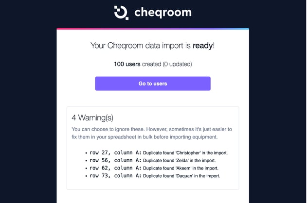 Once the upload is complete, you’ll receive an email confirming whether the import was successful and highlighting any issues, if there are any.